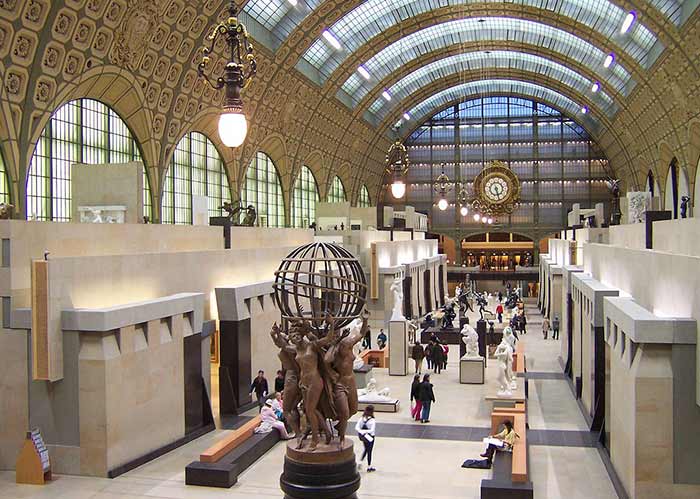 Im Musée d’Orsay finden Besucher mehr als 4.000 Ausstellungsstücke aus den unterschiedlichsten Bereichen des Kunstmarktes. Die Sammlung entstand zum größten Teil zwischen den Jahren 1848 und 1914 und besteht unter anderem aus imposanten Skulpturen, Gemälden und vielen anderen impressionistischen Werken. Überall stößt man hier auf große Namen wie Monet und Renoir, aber auch für den Blick auf die vorbeifließende Seine lohnt sich die Besichtigung des Museums. Das Gebäude selbst war ursprünglich ein Bahnhof, der im Jahr 1900 eingeweiht wurde. Als dessen Kapazitäten allerdings nicht mehr ausreichten, wurde Ende des Jahres 1989 schließlich das Musée d’Orsay eröffnet. Noch heute erinnern einige Baustrukturen und Inventare an den ehemaligen Verwendungszweck des Ortes.